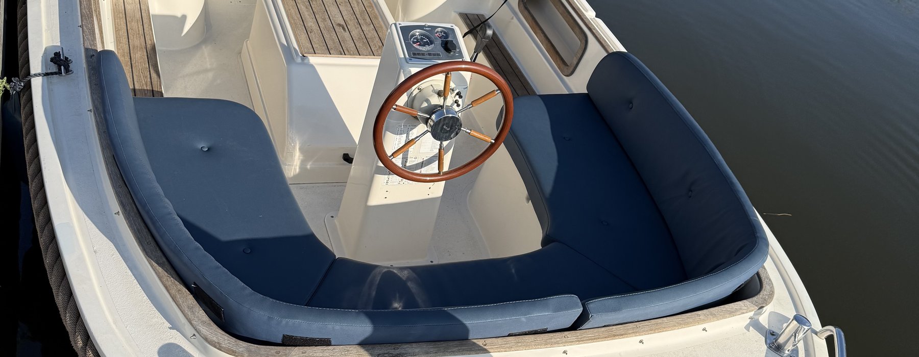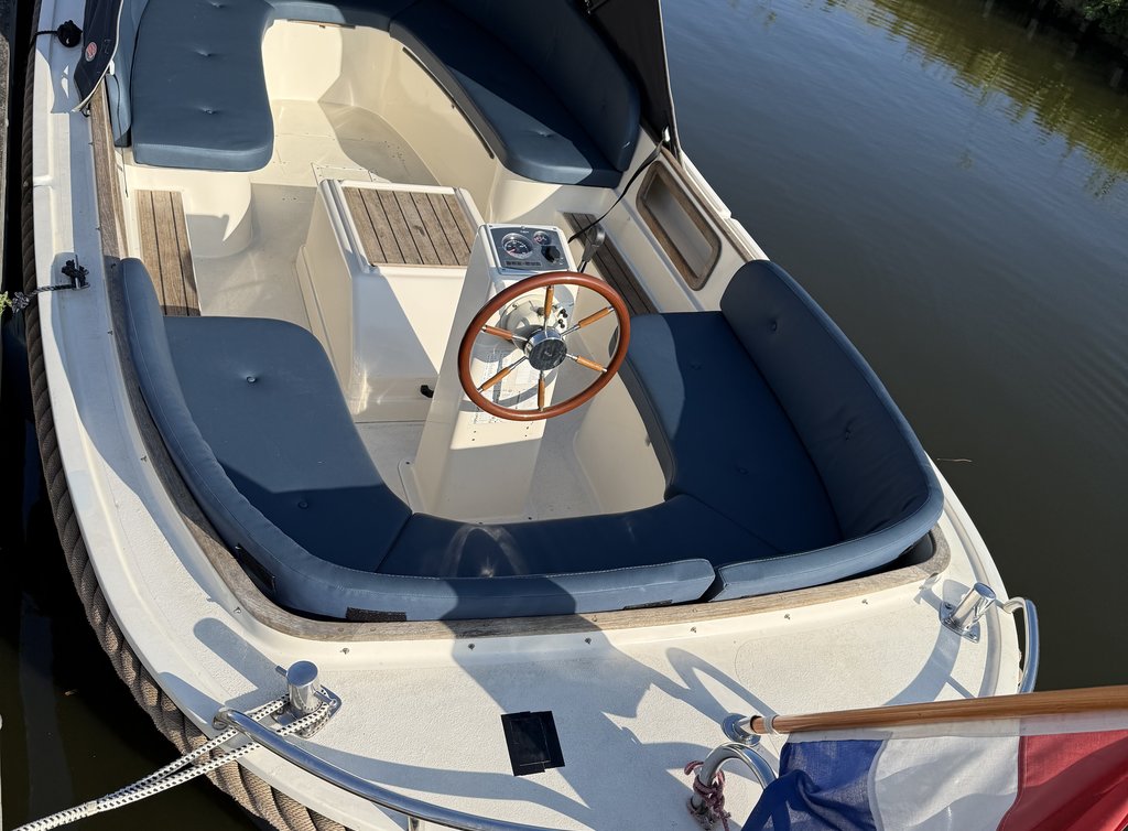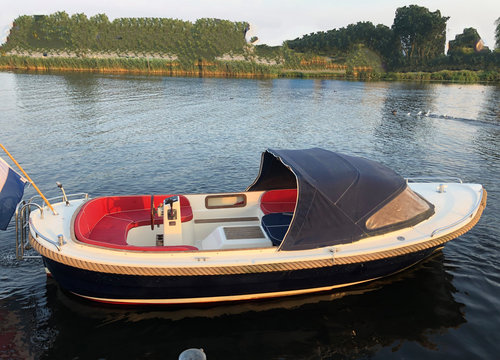 Onze Maril 6.25 sloep "Just4Fun" is een robuuste en zeer stabiele sloep die over voortreffelijke vaareigenschappen beschikt. Er is ruim plaats voor acht volwassenen aan boord. Bij ons is de Maril 6.25 sloep o.a. uitgerust met zit- en rugkussens, buiskap, stuurconsole met stuurradbediening, dieselmotor en zwemtrap. De zithoogte zorgt voor veel comfort, en voor de veiligheid van uw kinderen. Voor het besturen van onze sloepen hoef je niet in bezit te zijn van een vaarbewijs.