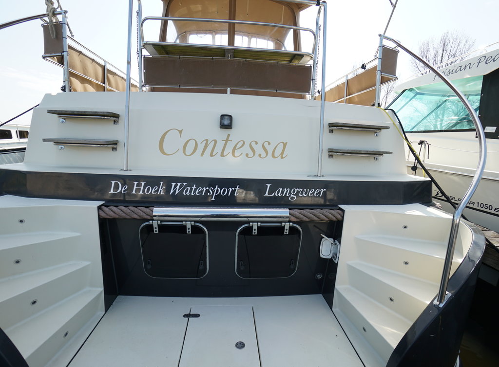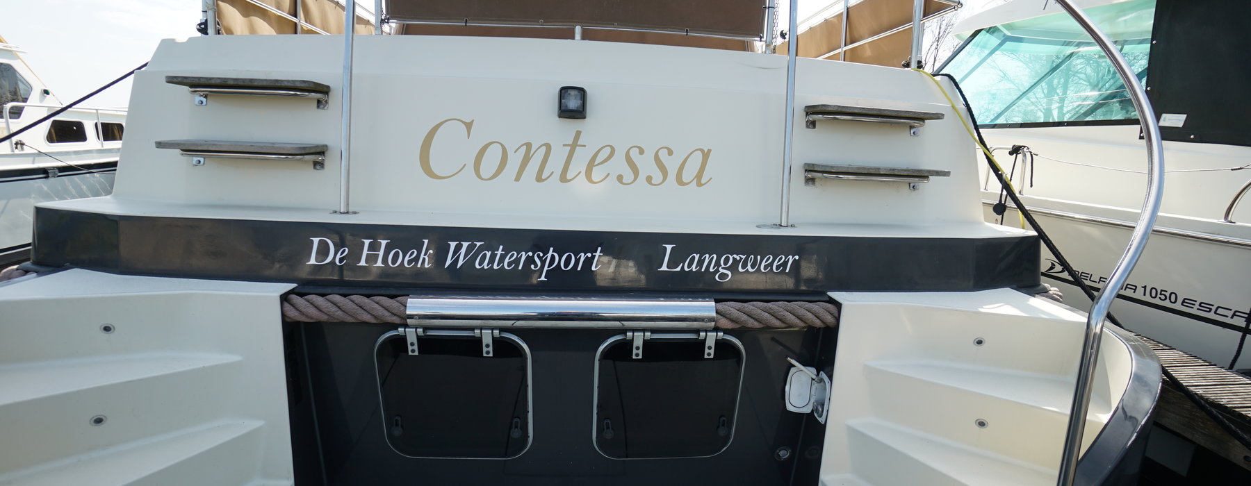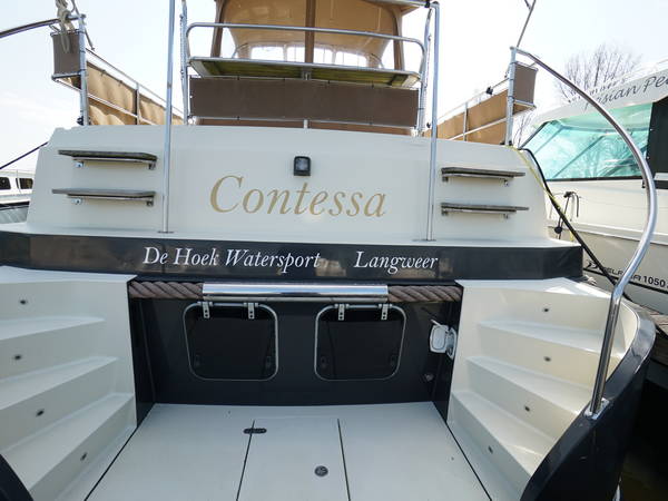 Motorjacht Contessa is een prachtig modern ruim jacht voor 8 tot 10 personen. Met een lengte van 13.30 meter en een breedte van 4.20 meter heeft u de beschikking over een geweldige ruime leefruimte waarbij het schip van alle gemakken is voorzien. Per slaapvertrek is er de beschikking over een eigen sanitaire voorziening (3 x wc & 2 X douche) zodat de boot ook alle privacy en comfort biedt. Vanaf de bovenbesturing heeft u een mooi zicht over het schip en perfecte plek om in alle rust te genieten. Het schip is zeer goed bevaarbaar doordat hij uitgerust is met een boeg- en hekschroef.
