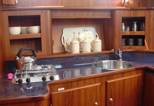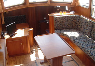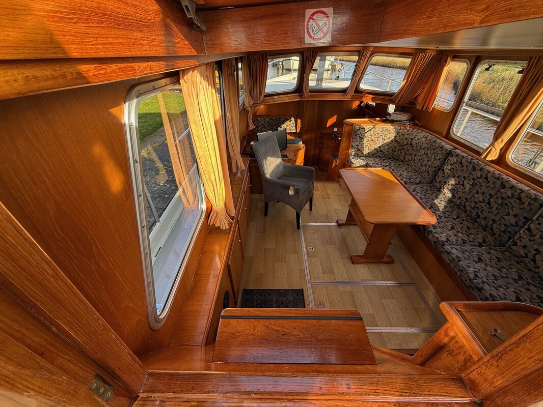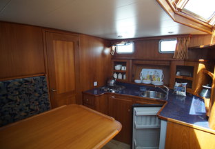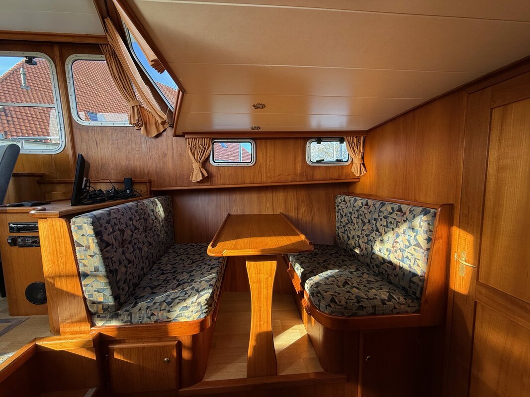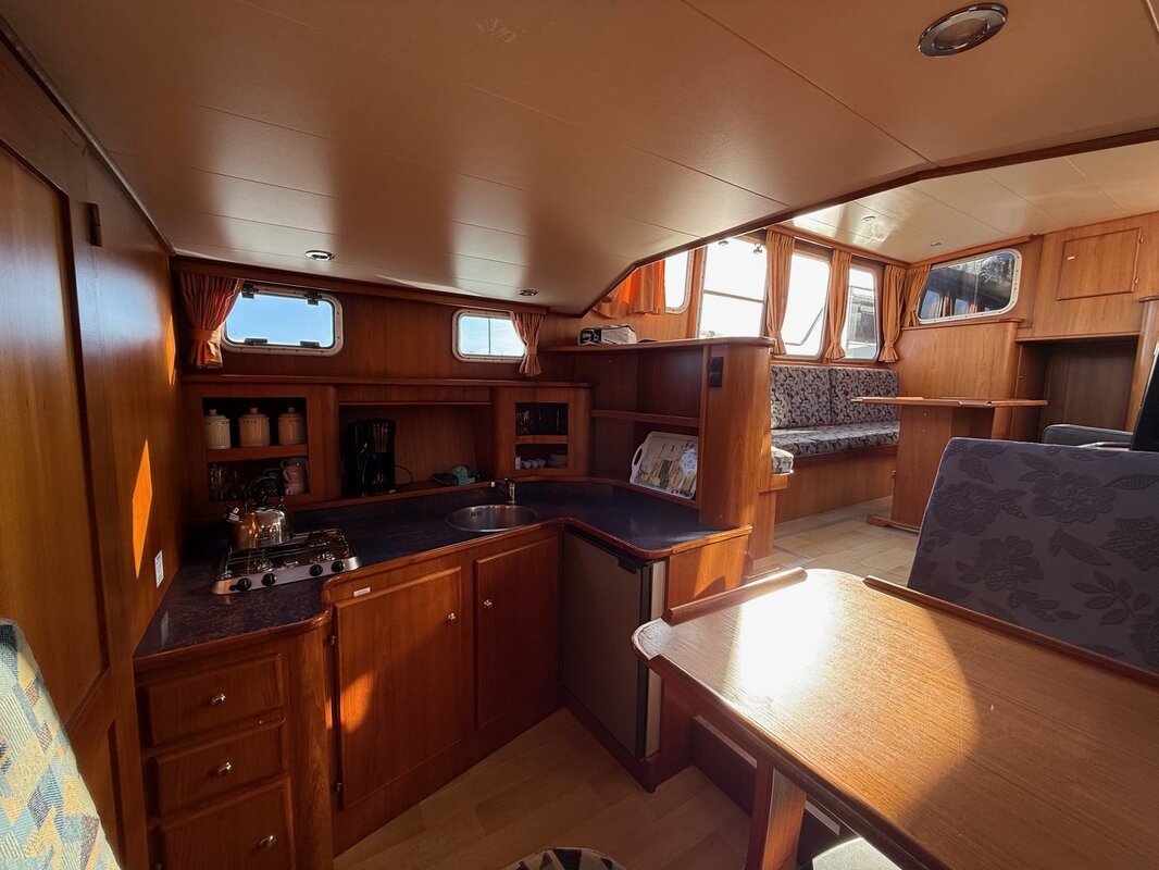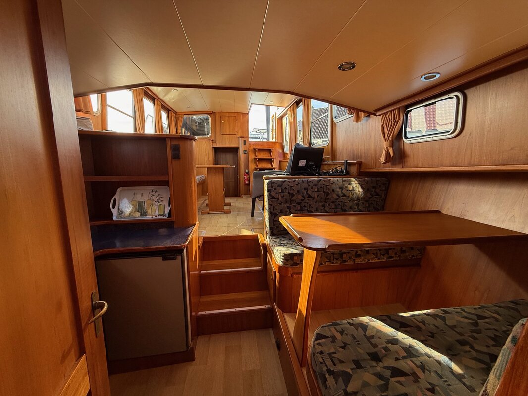- Kajuit: Ruime kombuis en dinette die omgebouwd kan worden tot een tweepersoonsbed, en een comfortabele zithoek.