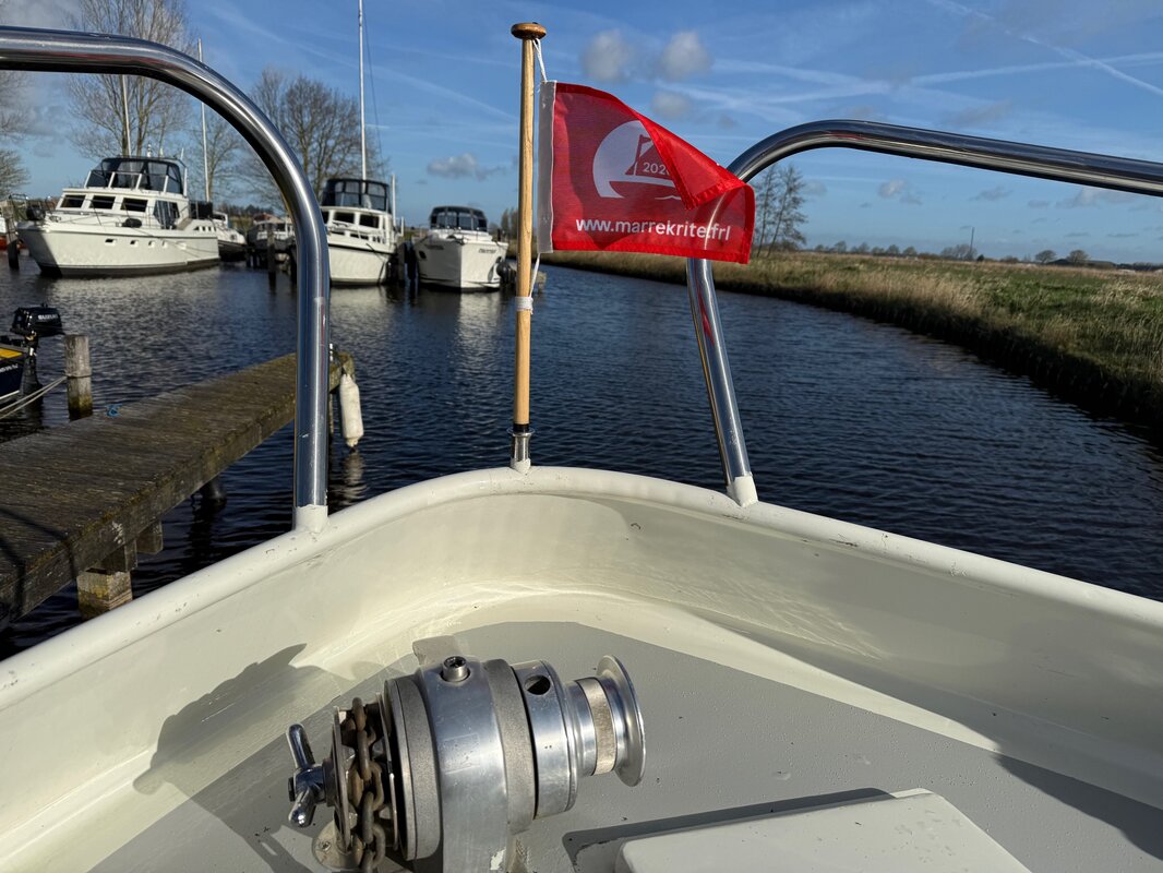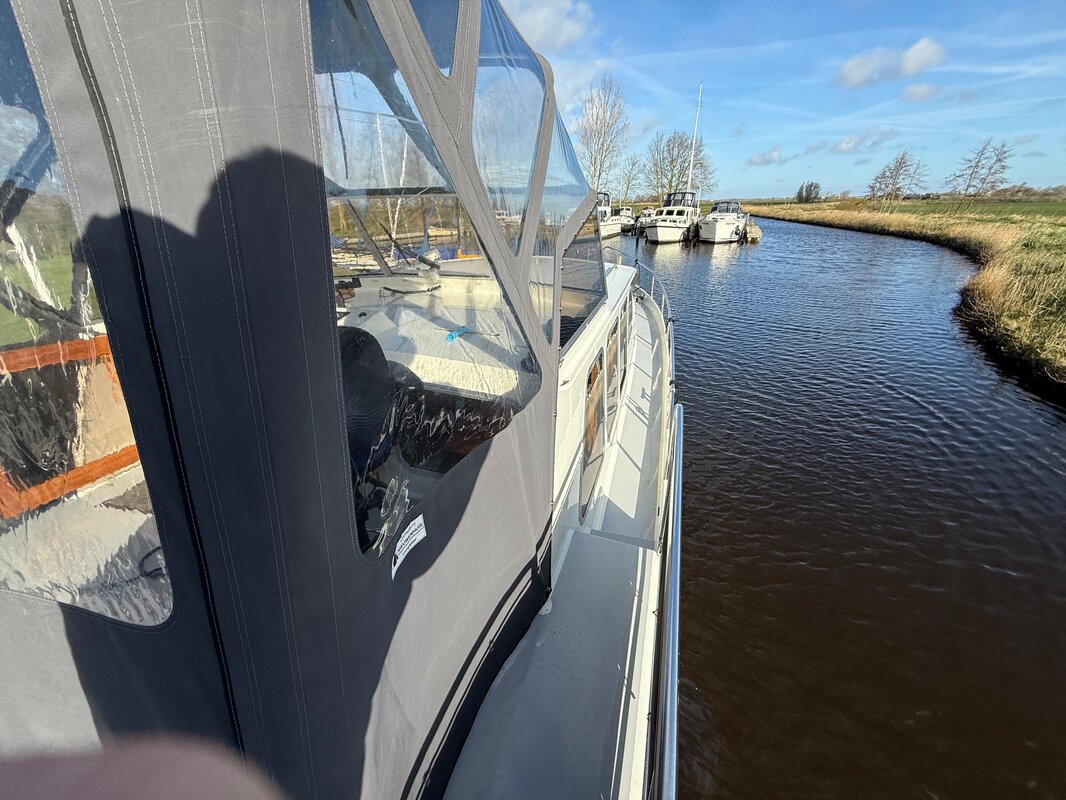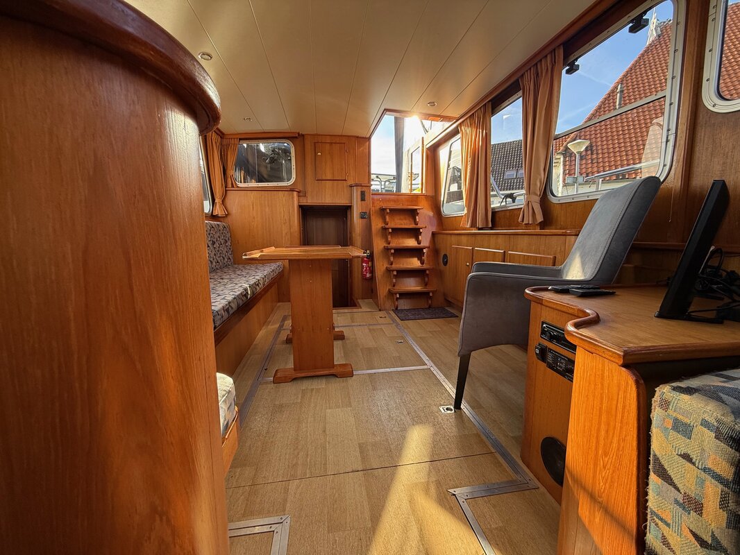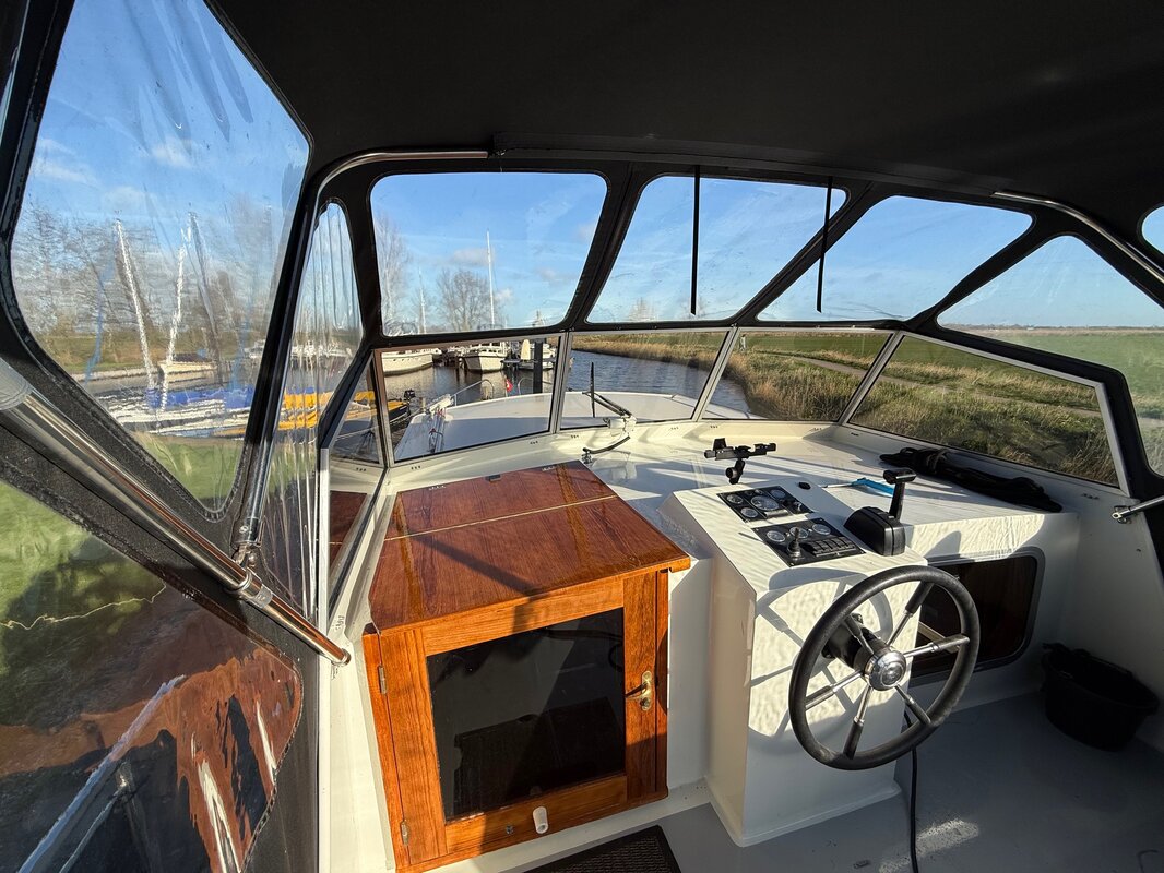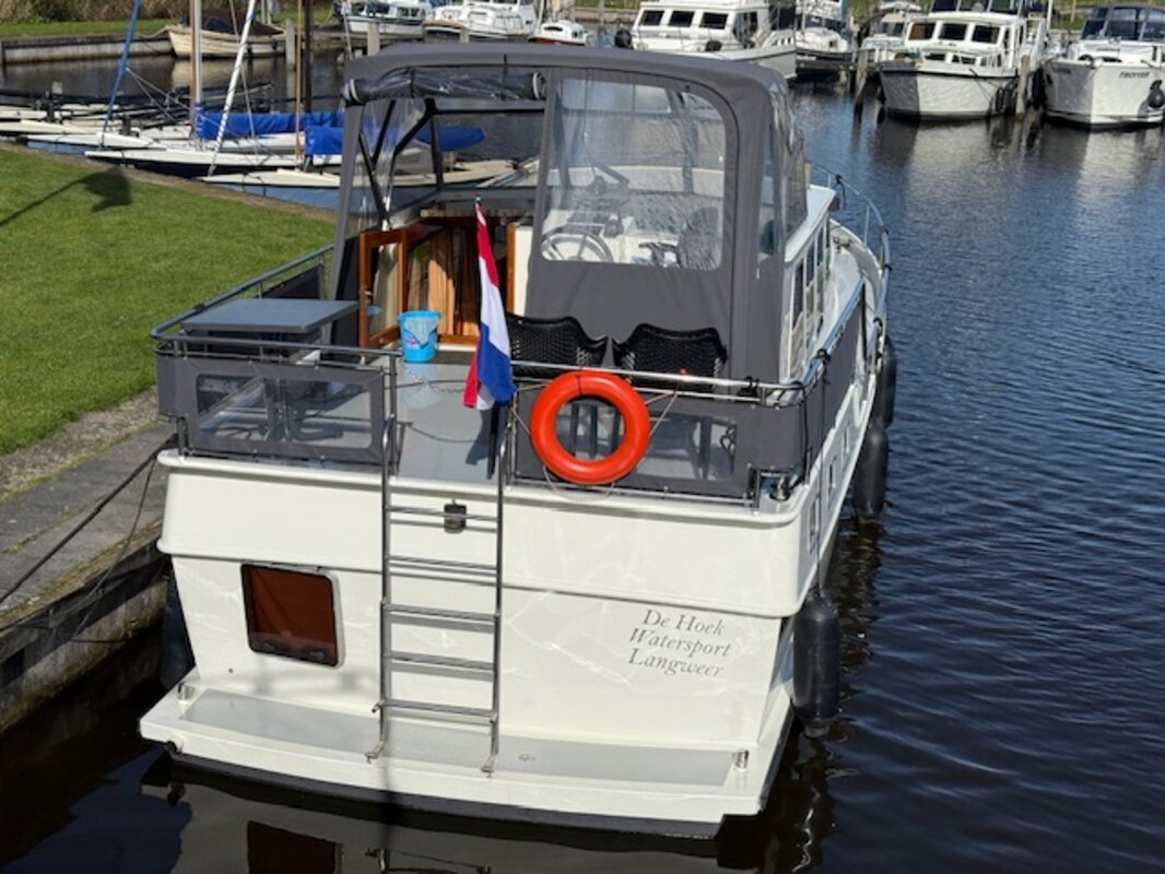 - Achterdek: Ruim achterdek met stuurinrichting onder een cabriokap, zodat u beschermd bent tegen zon en regen.