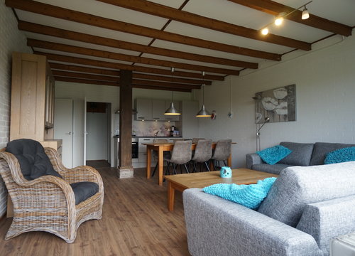 • Beneden: Ruime woonkamer met een gezellige eethoek, twee comfortabele banken en een fauteuil.