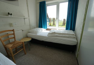 • Boven: Twee slaapkamers, één met 2 eenpersoonsbedden en één met 4 eenpersoonsbedden.