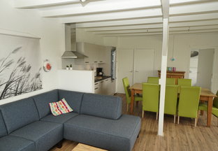 • Begane grond: Gezellige en comfortabele inrichting, grote eettafel voor 8 personen, en een slaapkamer met 2 eenpersoosnbedden