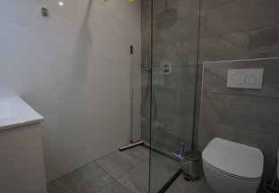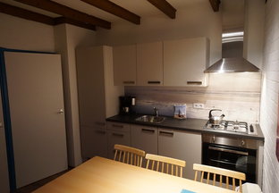 • Begane grond: woonkamr met keuken, badkamer en slaapkamer met 2 x eenpersoonsbed.